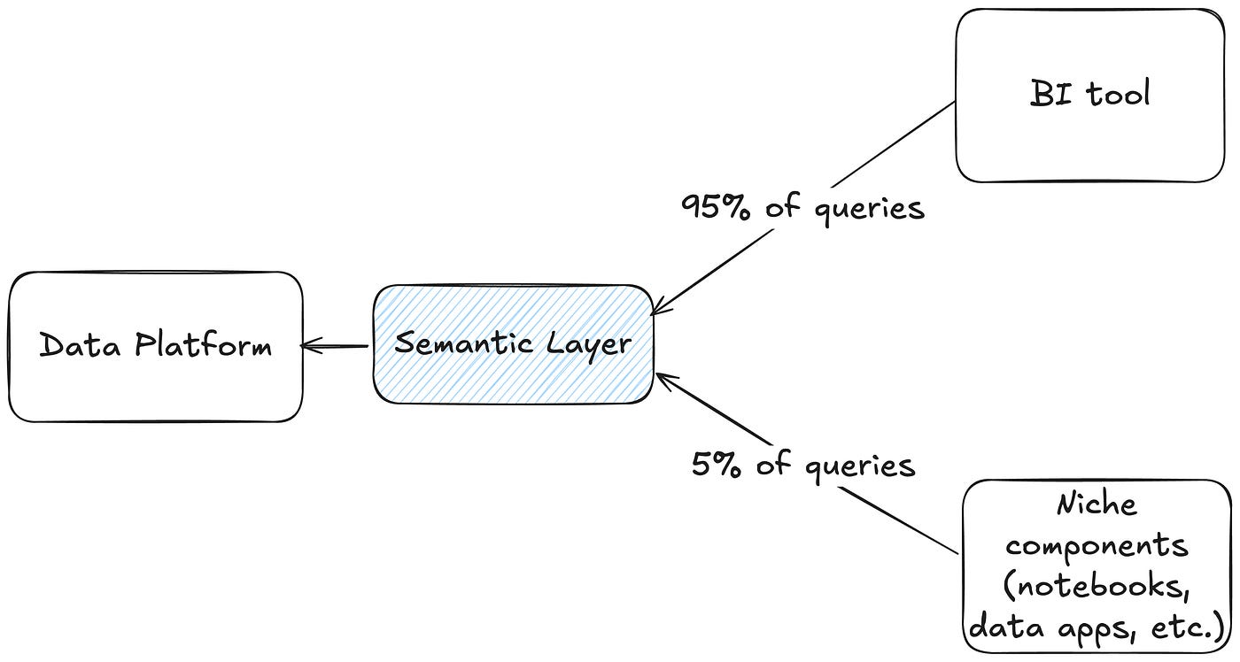 In theory it was an essential component, sure, and I was a strong believer in its value - but it ultimately consisted of thousands of YAML lines just to define how customers joins with orders. The promise was “metric consistency,” but deep down, many of us knew it was overkill: The use cases weren’t there yet, and all the semantic layer was doing was adding friction between a BI tool (where analytics lived at the time) and a data warehouse.